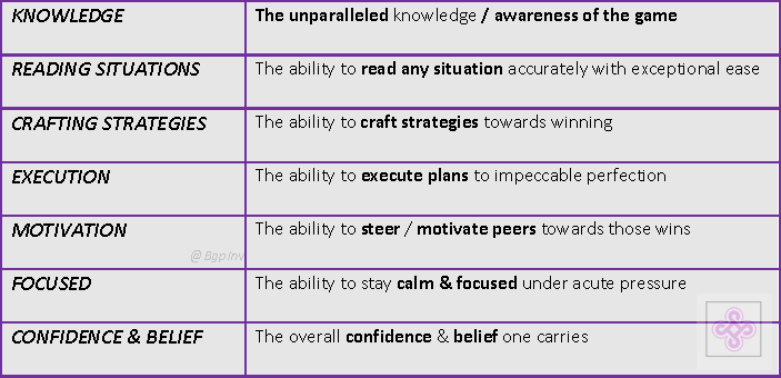 If you observe, there’s one key element that gets such genius players to standout & that is DETAILING. Detailing goes above & beyond mere awareness. It of course encompasses a supreme degree of awareness alright but also involves a high degree of consciousness about the whole environment, the situation & reading its subtlety well in advance, being well informed of the nuances, the know-how of exactly which lever to pull so as to maximize a certain metric, optimize for a goal steering oneself towards a position of advantage thereof.
